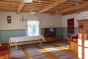 Päärakennuksen eteisen ja tuvan alkuperäinen ovi tuo vieraan isoon tupaan. Viileällä säällä lämmin leivinuuni hohtaa ihanasti lämpöään ja uunin kupeella oleva keinutuoli kutsuu houkuttelevasti istahtamaan. Uunin lämmössä paistuvat niin puurot kuin paistitkin. Valoisan tuvan kuusiruutuikkunoista avautuu näkymä pihalle ja pihatielle. Tuvan pitkän pöydän äärelle mahtuu koko seurue. Uneliaalle on piilossa uunin takana tuvan perinteinen nukkumapaikka (120 cm runkopatjasänky).